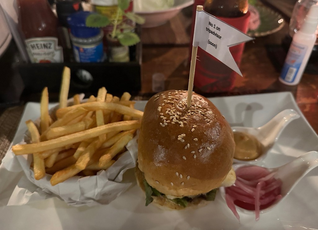 Cozy restaurant- this is a restaurant more on the expensive side but the food was delicious. I had a halloumi burger which was amazing. It was the first time I had seen halloumi on a menu in South East Asia so it really was a treat. There are loads of different options from burgers to fish to Thai tapas. There is also a great selection of gin.