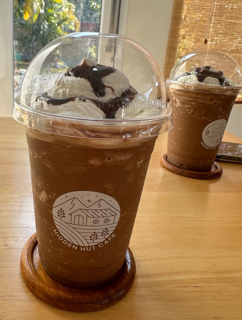 Hidden Hut cafe & eatery- this cafe was a bit in the middle of nowhere but it was a nice drive there. There are plenty of seats and in one part there is air conditioning which we welcomed! There is a large variety of drinks to choose from. We tried fruit shakes and a mocha frappe, all of which were very nice. They also serve food but we didn’t try any of this.