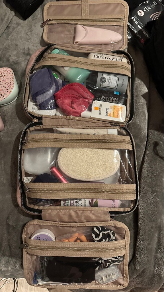 I had a hanging toiletry bag for my toiletries and also another toiletry bag for overspill!