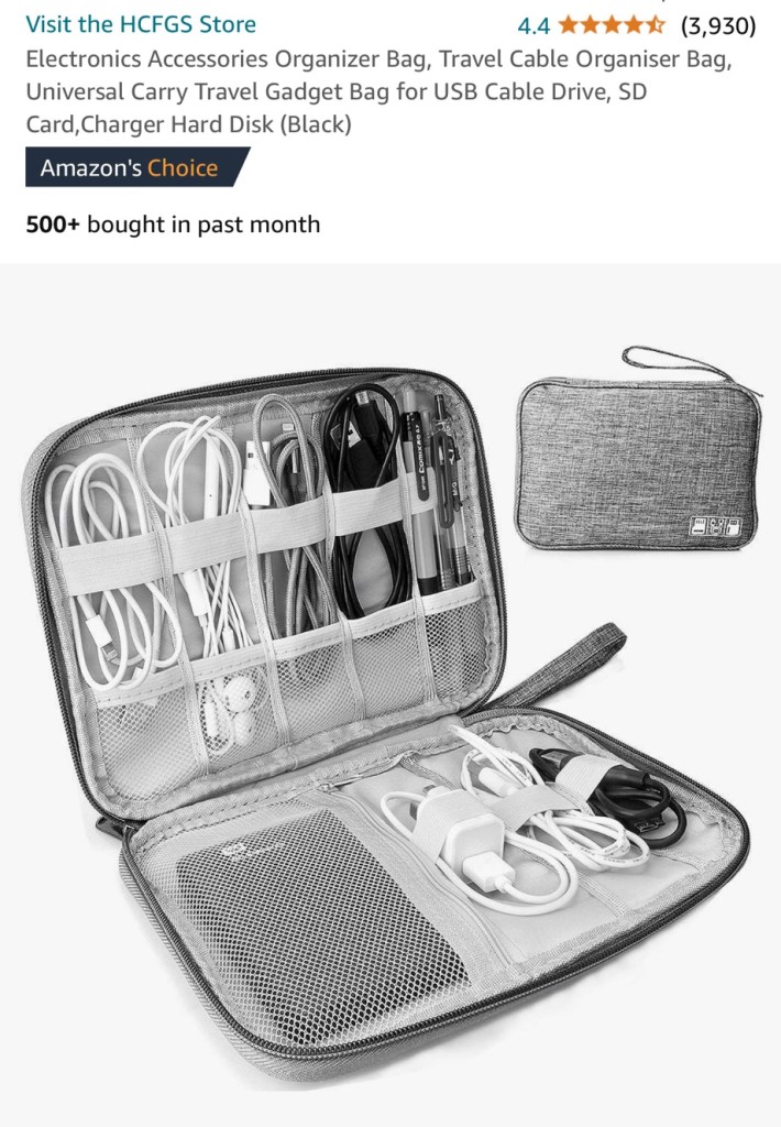 We each have a cable organiser where we store all of our cables. This makes sure we don’t lose any of our wires. In Asia we had one each but we managed to share one in Europe to save space. You can actually fit a lot into one.